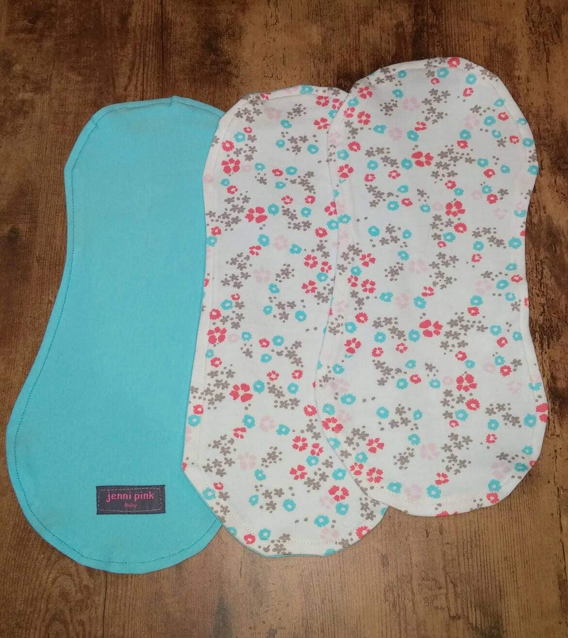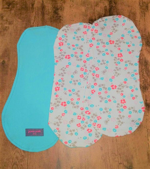 My organic cotton burp cloths will be your babys new favorite. These double layer super cute burp cloths features cute little pink gray coral and aqua flowers on an Ivory background The reverse is a solid aqua. You will receive 3 burp cloths, 2 with the featured print and 1 solid aqua These burp cloths are made out of lightweight organic cotton knit.